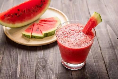 2. 西瓜汁:将西瓜榨汁,加入冰块,冰镇后饮用,清凉解暑。